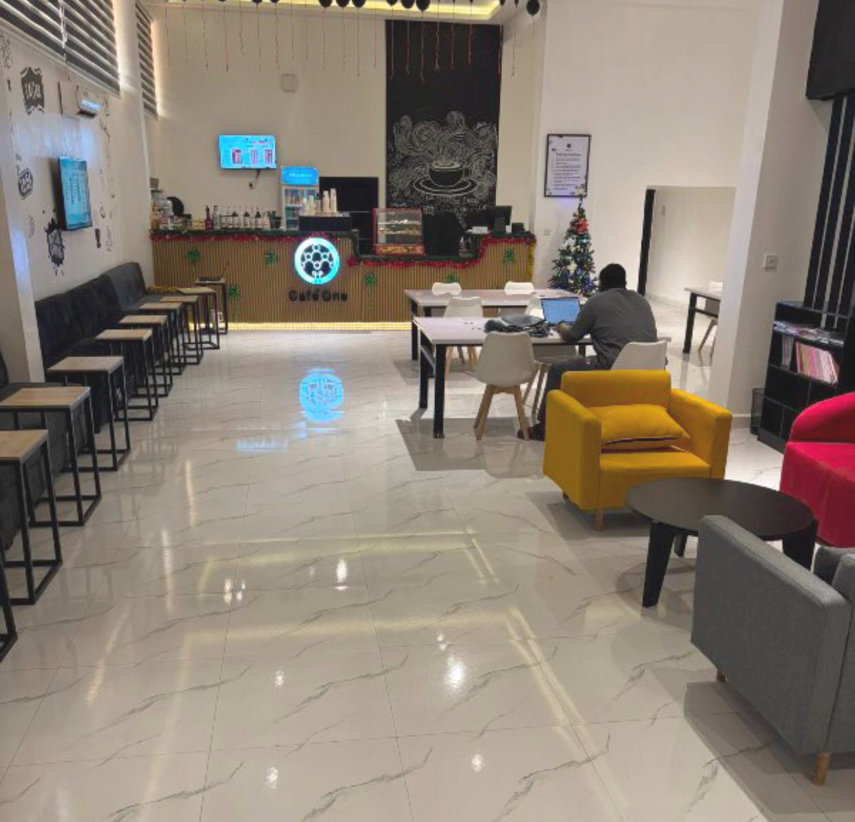 Café One Enugu is a modern coworking and digital innovation hub designed for entrepreneurs, freelancers, startups, students, and remote professionals. The workspace provides a collaborative environment with reliable internet, comfortable workstations, meeting facilities, and a café-style atmosphere where visitors can work, network, host meetings, and attend digital events. The hub was introduced as part of initiatives to support digital innovation and entrepreneurship in Enugu State.